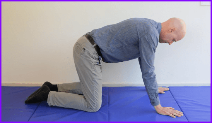 위 사진처럼 동물처럼 네발 자세를 잡아 준 다음에 옆구리와 골반을 좌우 번갈아 가면서 늘려주세요.